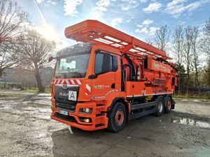 Nasza flota wzbogaciła się o supernowoczesny samochód typu WUKO marki MAN, służącego do uzdatniania sieci kanalizacji sanitarnej i deszczowej.